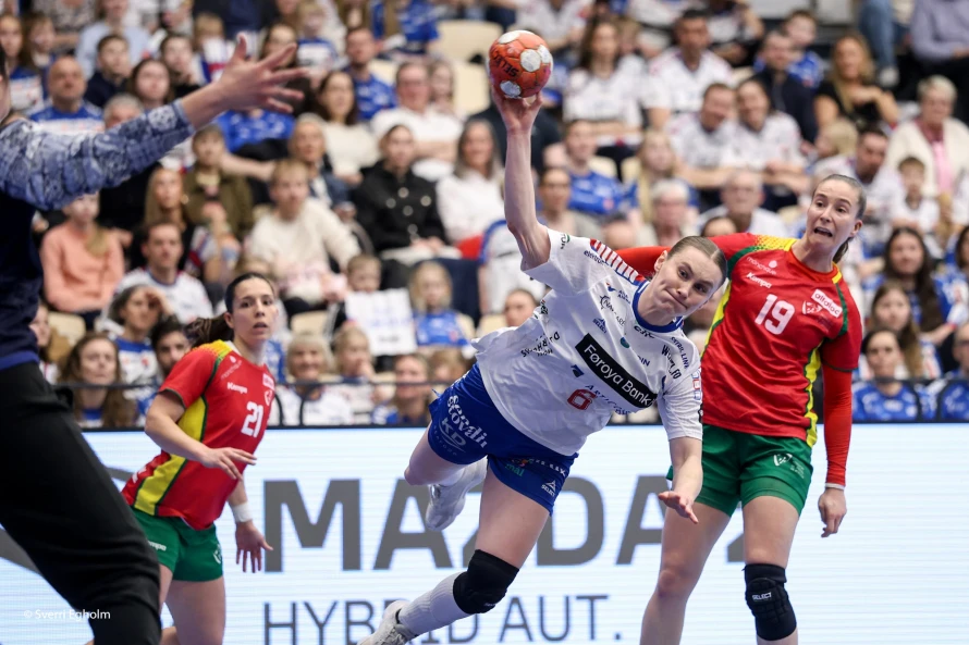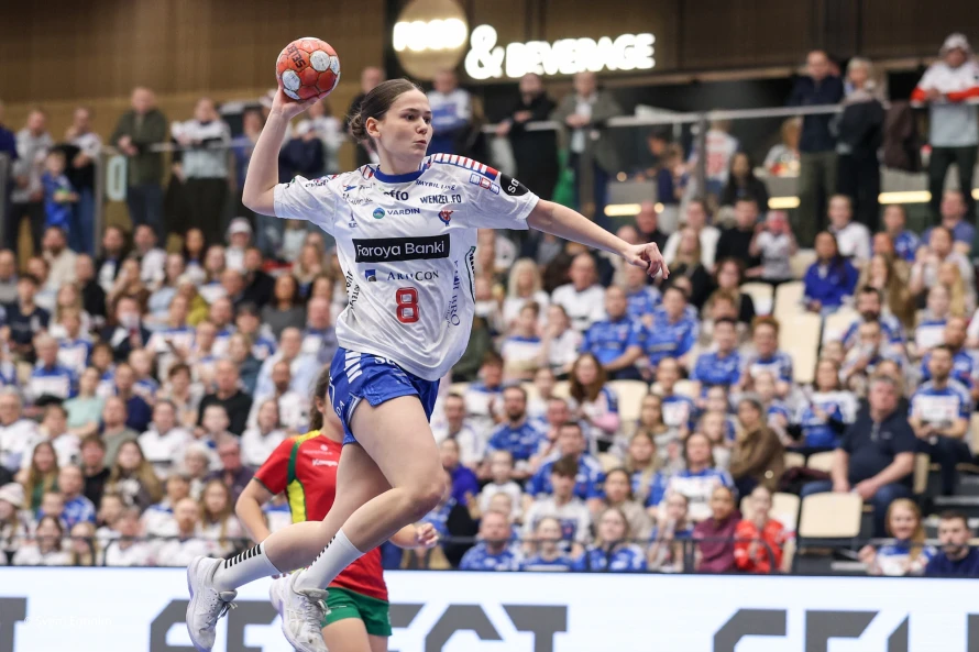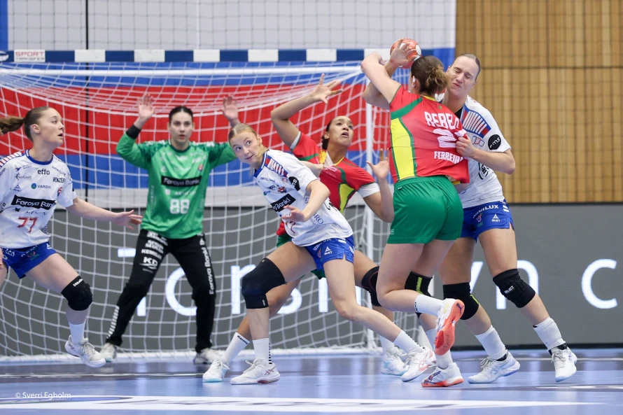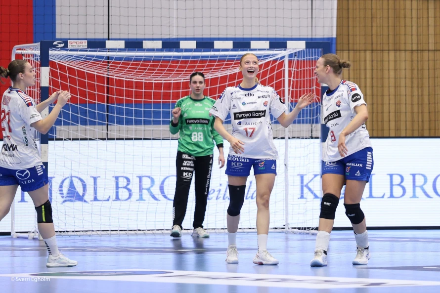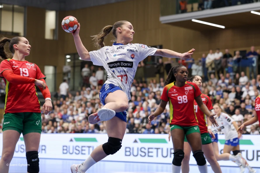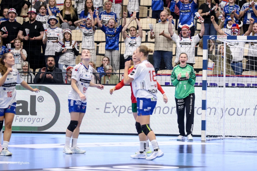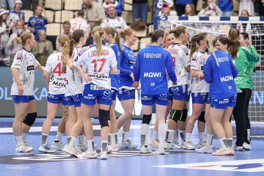 Føroysku kvinnurnar vunnu við fýra málum 25-21 í týðandi EM-undankappingardystinum. Sí myndir.