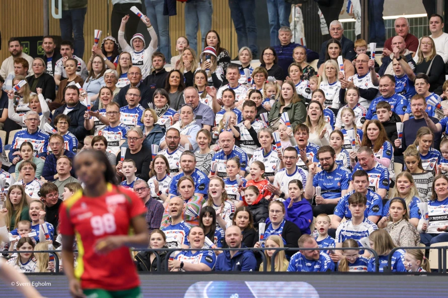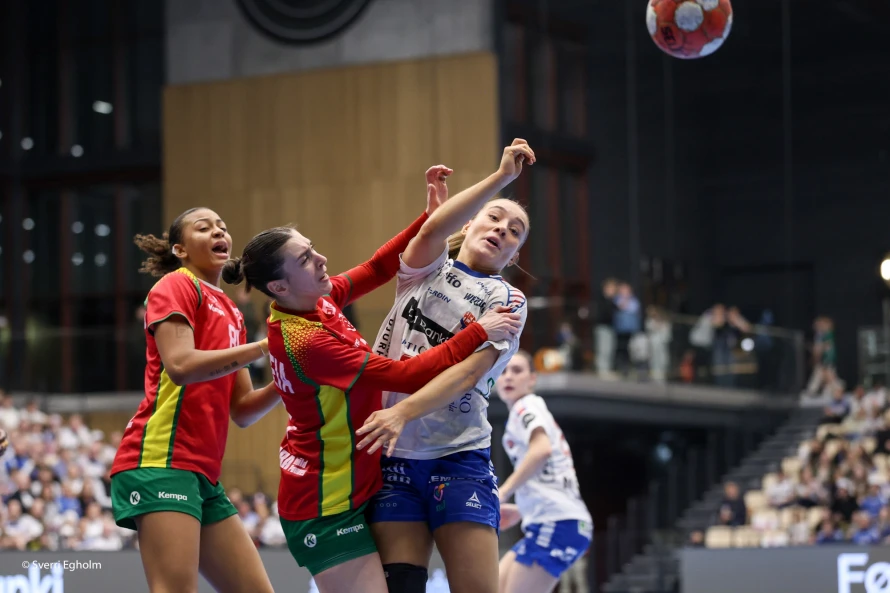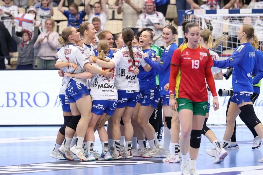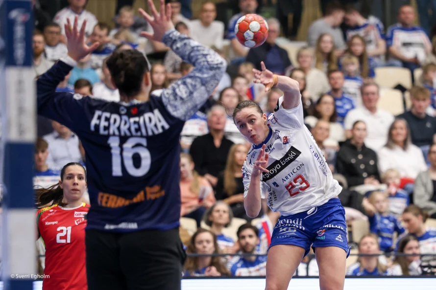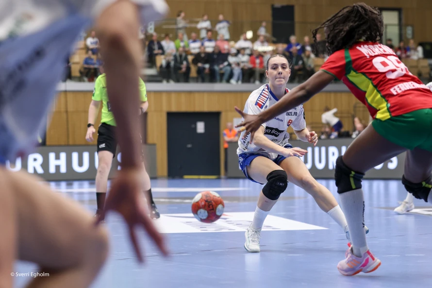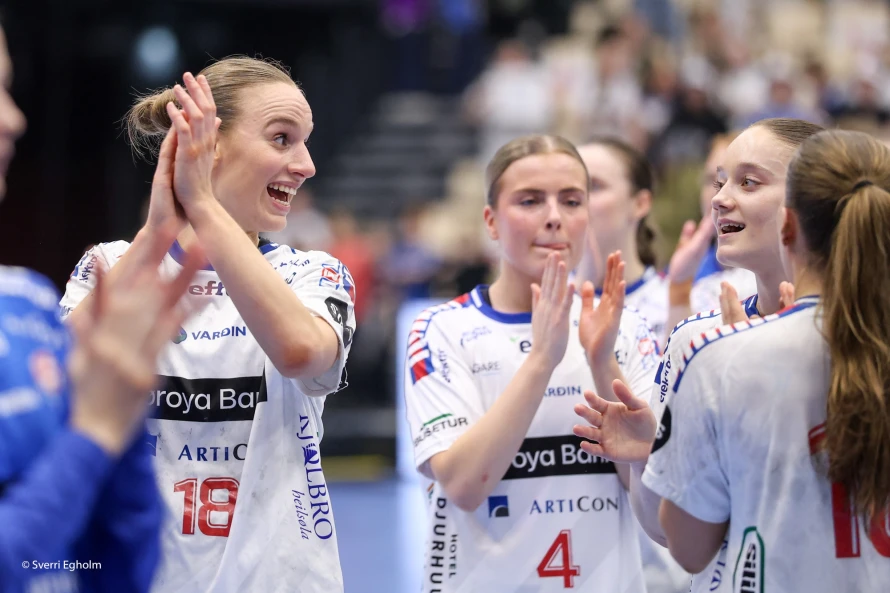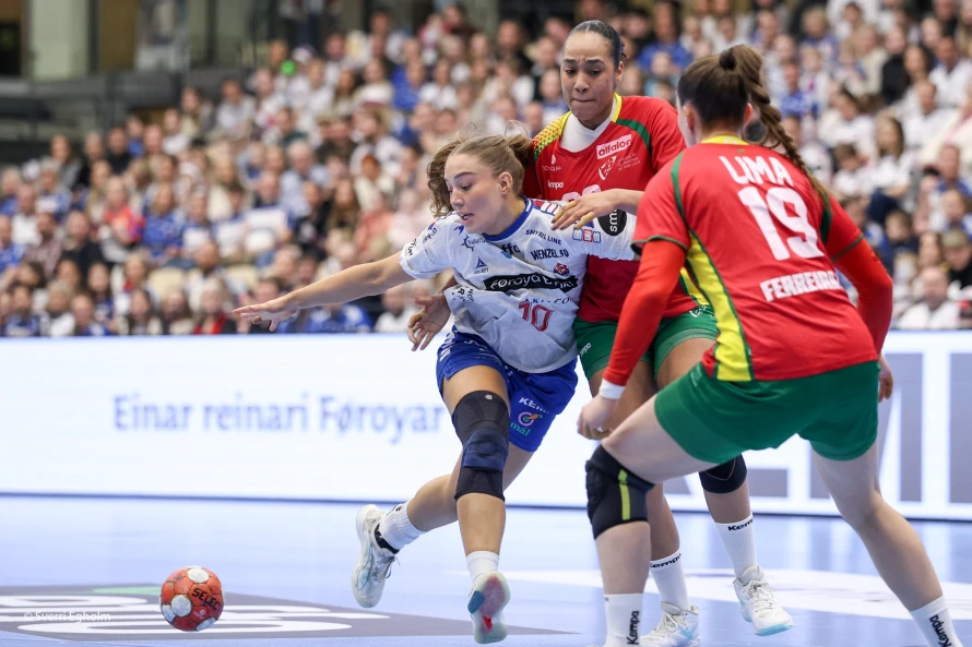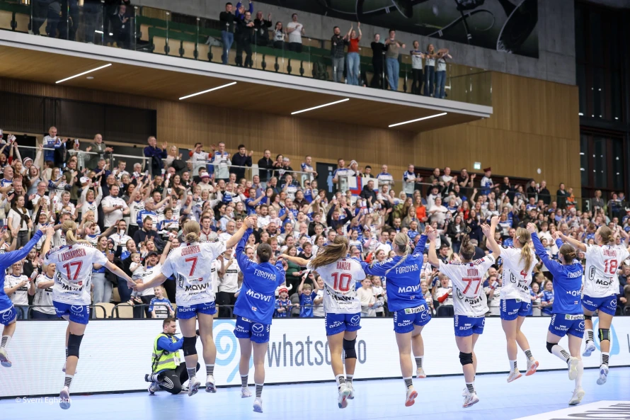 Føroysku kvinnurnar vunnu við fýra málum 25-21 í týðandi EM-undankappingardystinum. Sí myndir.