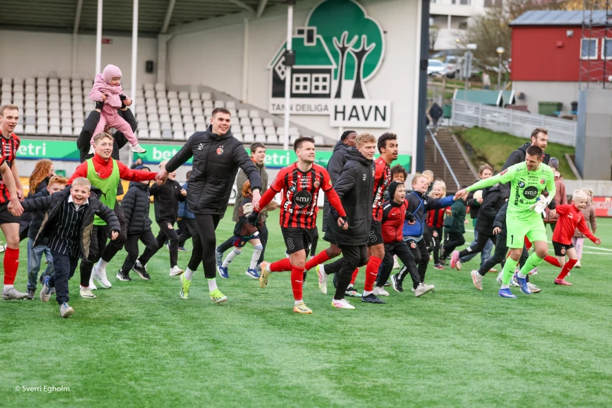 Tað endaði 3-1 í grannauppgerðini og harvið er HB víðari til hálvfinalurnar - og aftur á sigurskós.